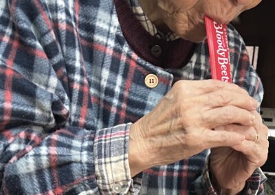 日本の厚生労働省が策定した「日本人の食事摂取基準(2020年版)」では、成人の1日あたりのビタミンC推奨量は100mgとされています。BloodyBeetsスティックには1本(14g)あたり154mgものビタミンC(レモン約8個分)が入っているので、1本で1日分のビタミンCを補えます。